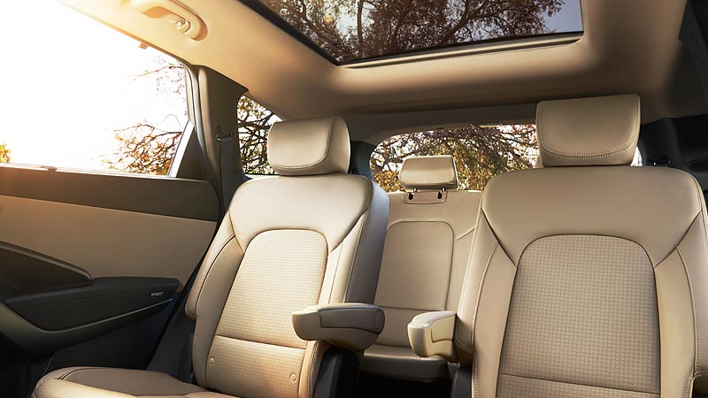 Some of the standard features of Sante Fe include cruise control, trip computer, tilt-and-telescoping steering wheel, , iPod integration, rear spoiler, etc, coupled with optional features such as roof rack rails, heated front seat, eight-way power-adjustable driver seat, foglights, heated mirrors, etc.
