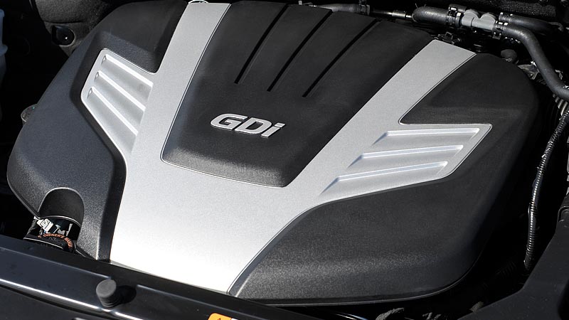 The 2013 Hyundai Santa Fe Sport is powered by a 2.4-liter four-cylinder engine which produces 190 horsepower and 181 pound-feet of torque. Common with all Santa Fe models is standard front-wheel drive and optional all-wheel drive. Available only in six-speed automatic transmission, Santa Fe has an EPA-rated mileage of 21 mpg city/29 mpg highway and 24 mpg combined driving for front-drive while AWD has 20/26/22 mpg respectively.